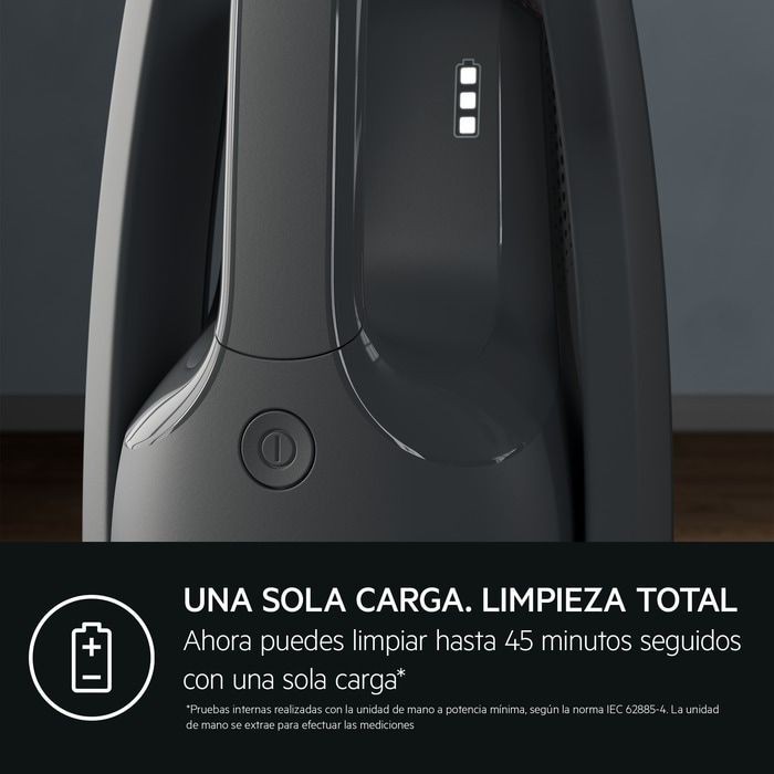 La AEG AS52CB18DG Serie 5000 es la aspiradora sin cable ideal para quienes buscan una solución de limpieza práctica, potente y eficiente. Su diseño ergonómico y ligero permite maniobrar con facilidad por toda la casa, alcanzando desde suelos duros hasta alfombras y esquinas difíciles. Con hasta 45 minutos de autonomía, disfrutarás de una limpieza continua sin interrupciones, perfecta para hogares, apartamentos o espacios pequeños.