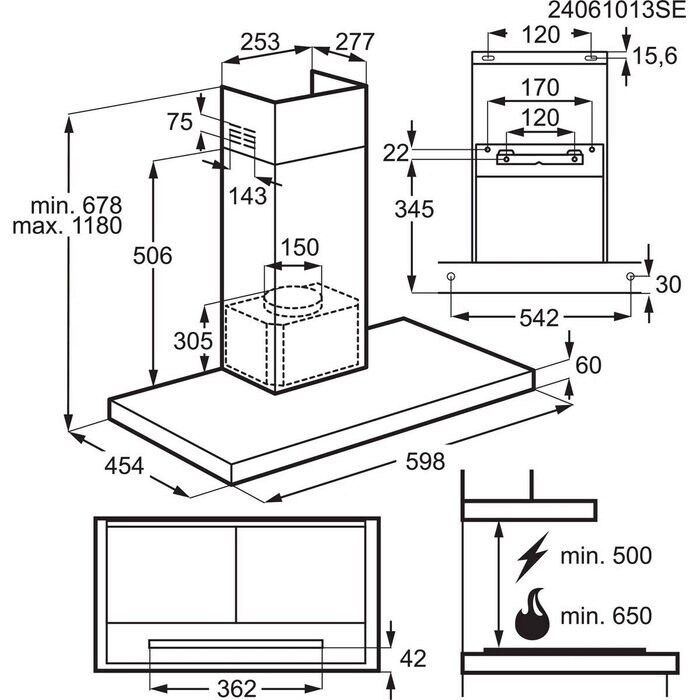 - Dimensiones: 598 x 280 x 300 mm