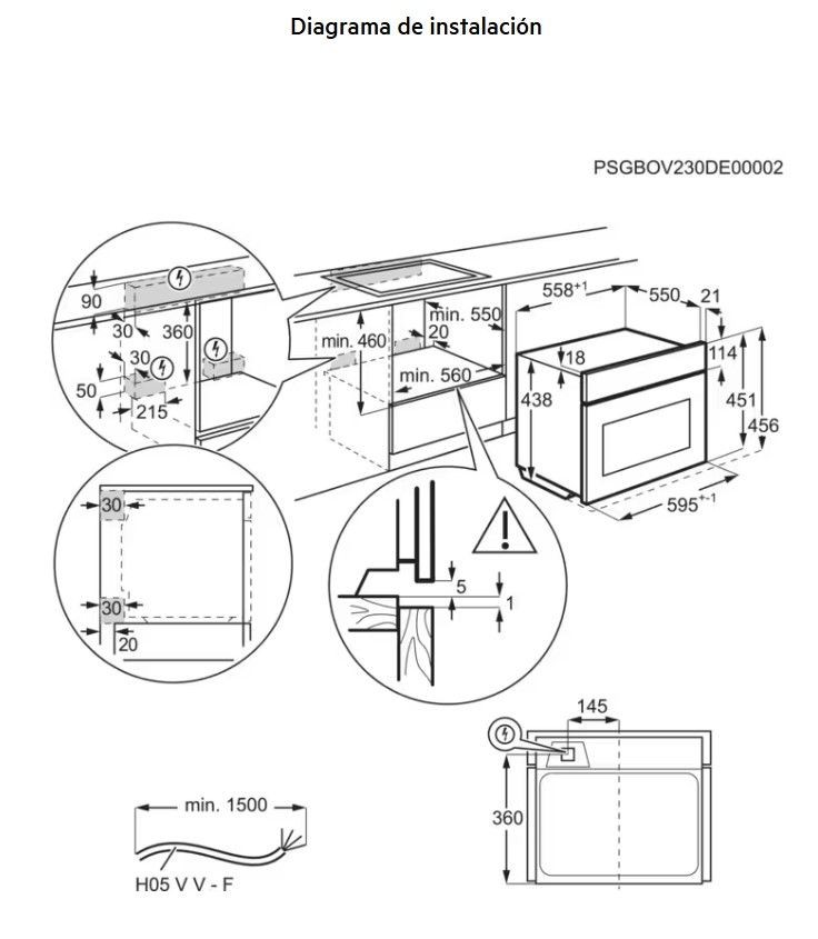 - Accesorios incluidos: Bandeja para hornear, parrilla, guía telescópica