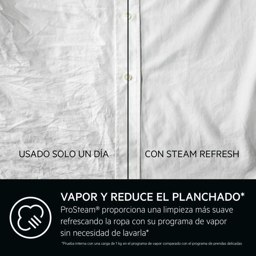 - Funciones inteligentes: ProSteam® que reduce arrugas y facilita el planchado, inicio diferido, detección automática de carga.