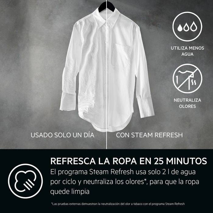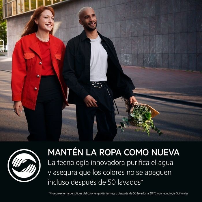 - Tecnología AbsoluteCare®: adapta el movimiento del tambor y la temperatura según el tipo de tejido, protegiendo fibras delicadas como lana o seda