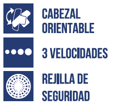Ventilador Industrial con 3 velocidades de ventilación. Seguridad antivuelco, asa de transporte y rejilla de seguridad. Potencia 45 W.